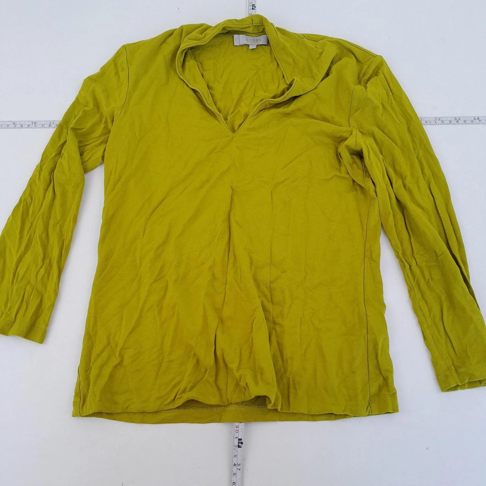 HOBBS Top Small Yellow Womens Long Sleeve V-Neck