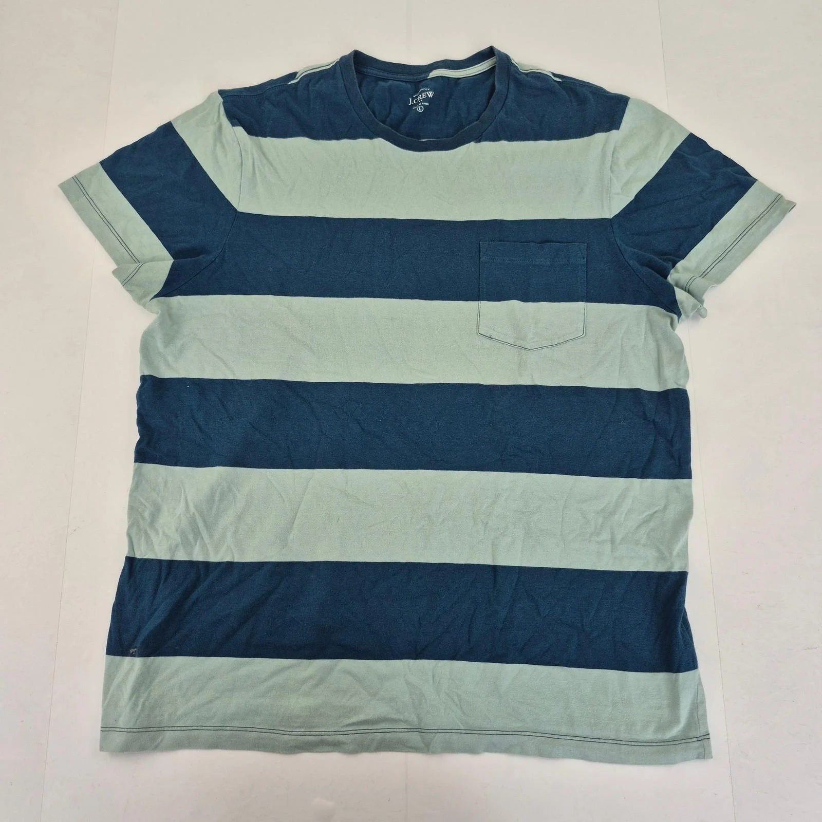 J.CREW T-Shirt Large Blue Green Men's Striped Cotton Casual Crew Neck