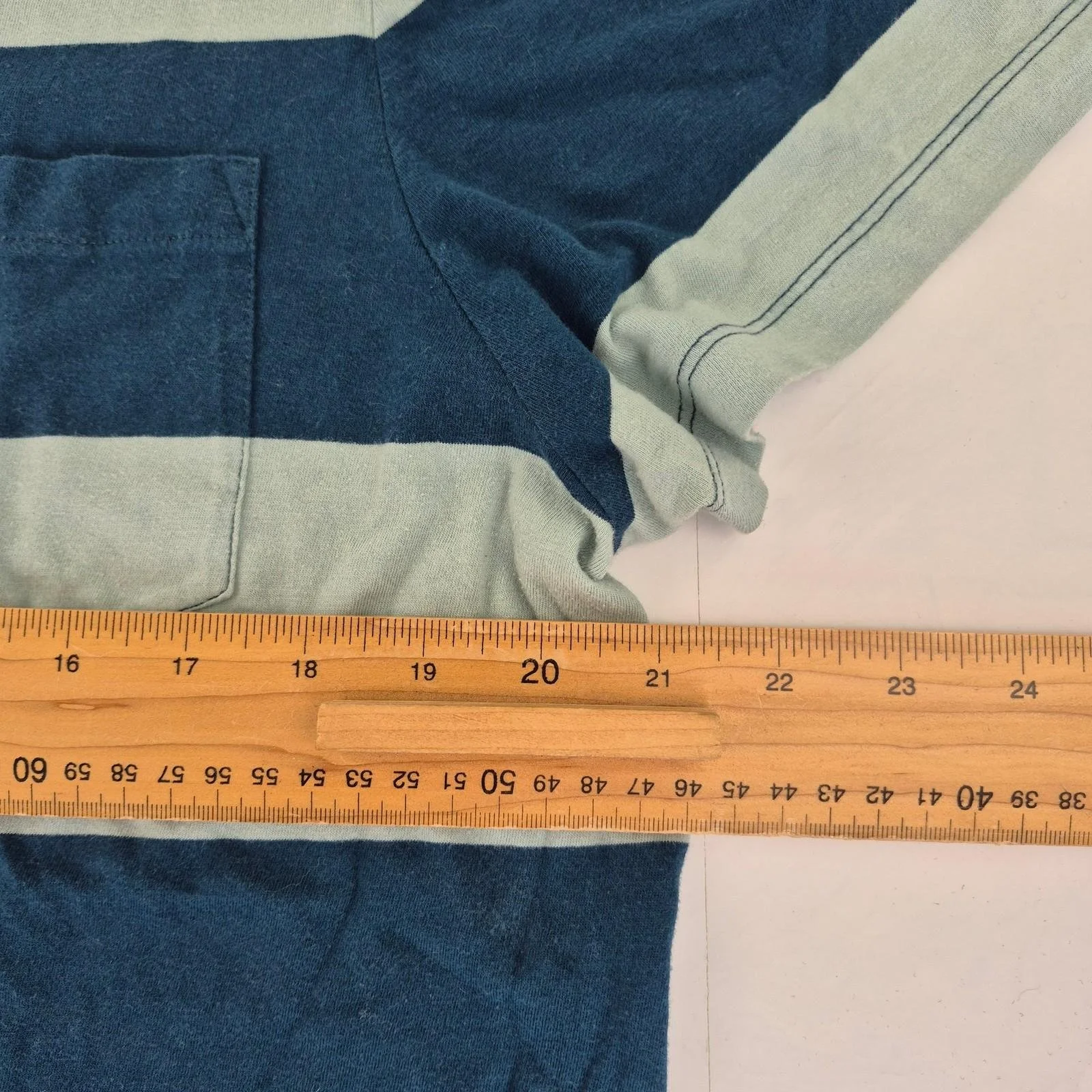 This J.CREW T-shirt features bold horizontal stripes in a stylish blue and green combination, perfect for adding a pop of color to casual wear. Made of 100% cotton, it offers breathable comfort suitable for everyday use. The classic crew neck and short sleeve design make it an ideal choice for warm weather or layering under jackets.