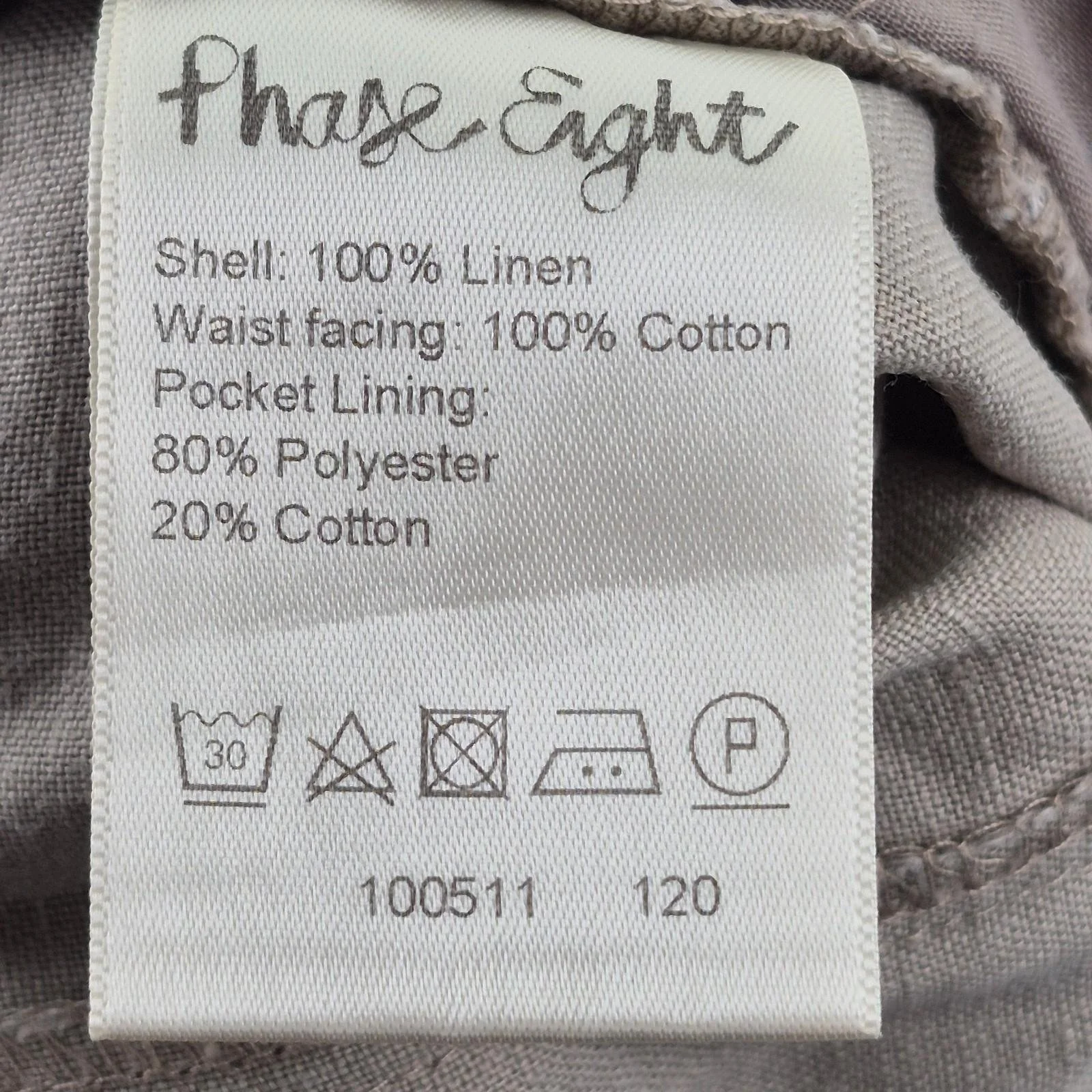 PHASE EIGHT Trousers 8 Beige Womens 100% Linen Cropped