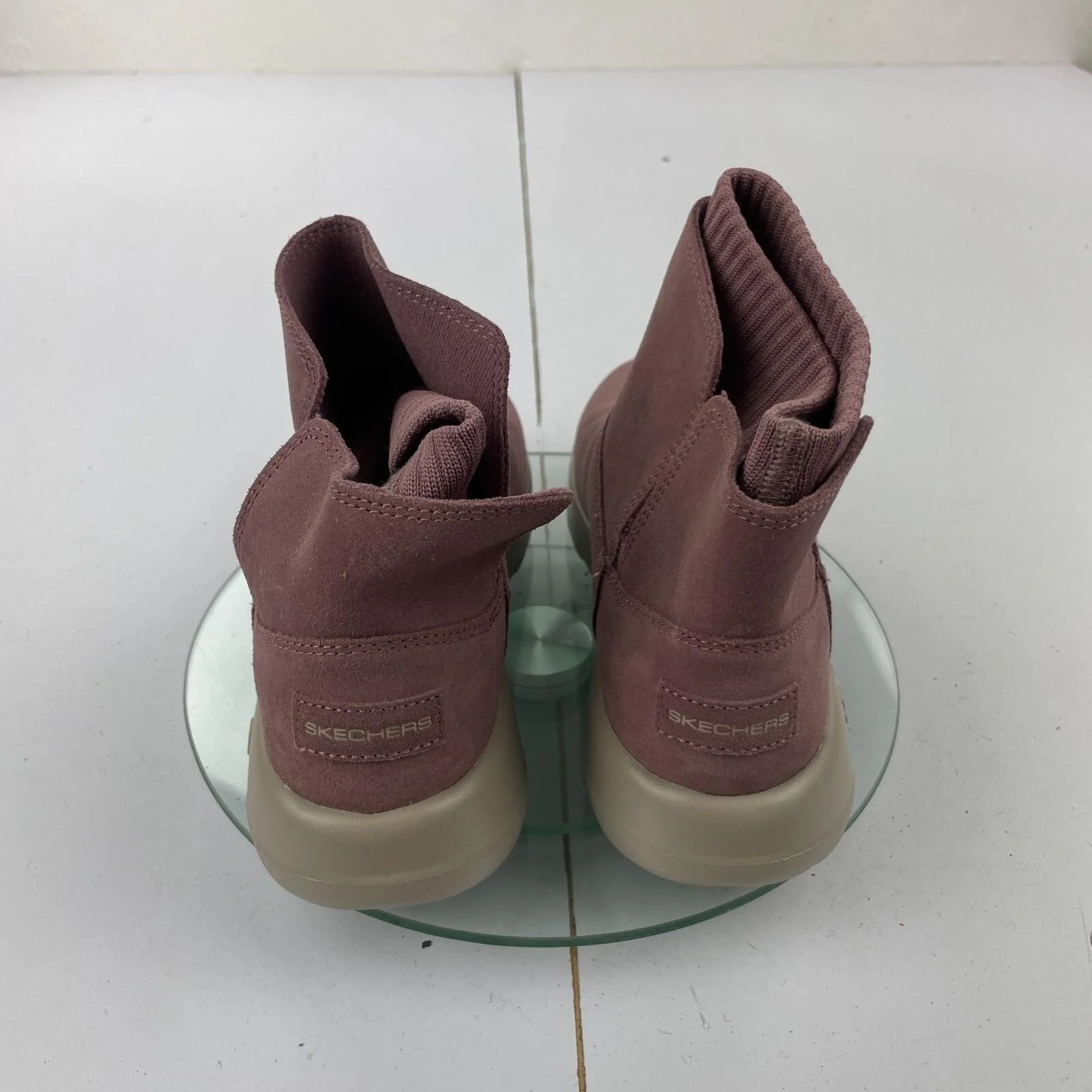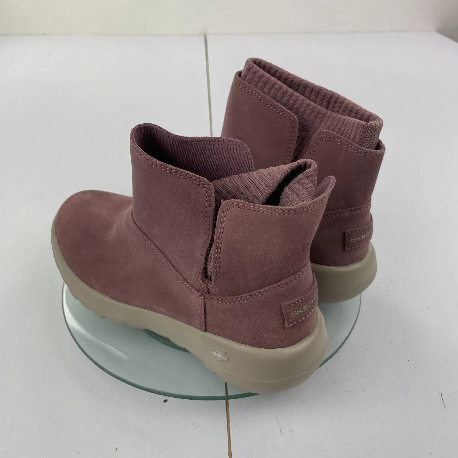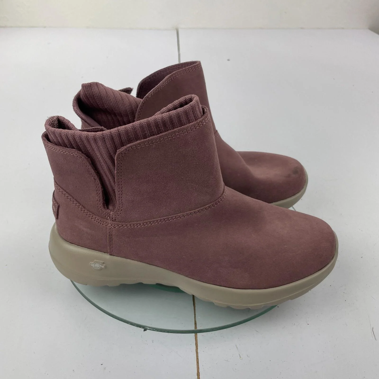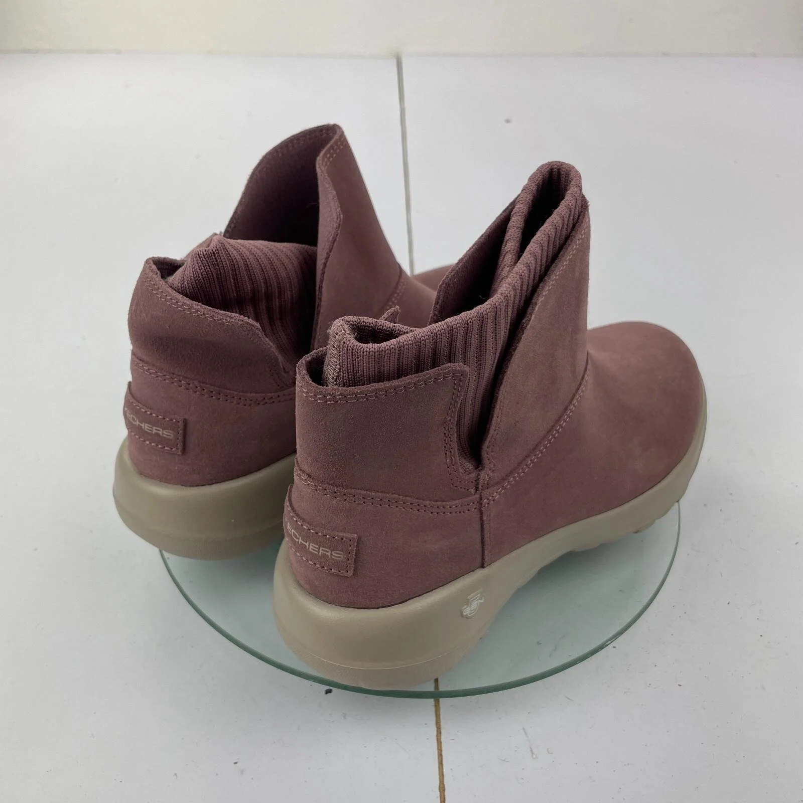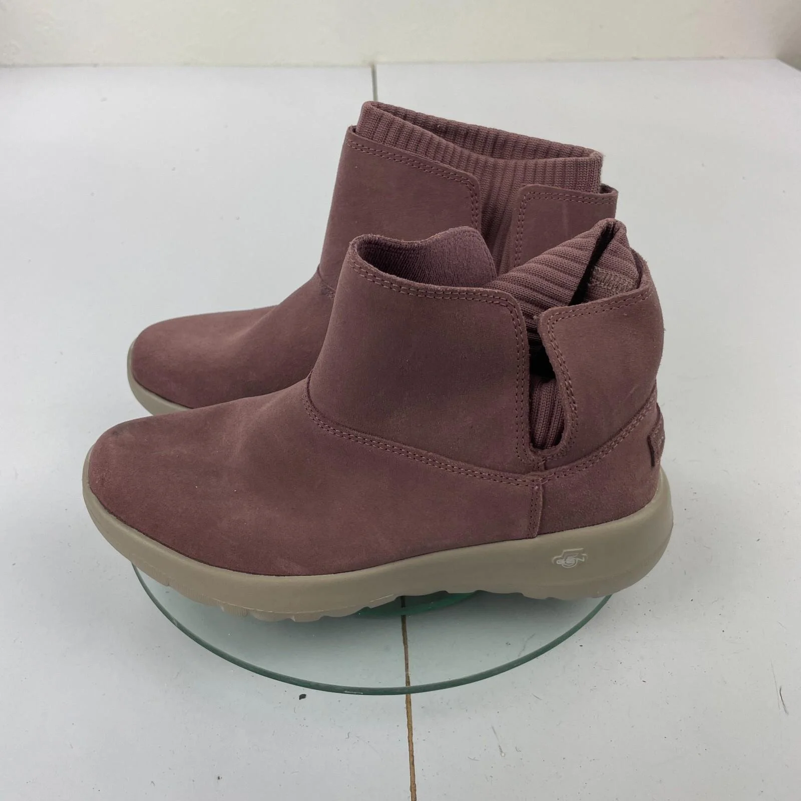 SKECHERS Goga Mat Boots 3 Purple Leather Womens Flat Bootie Slip On Sock