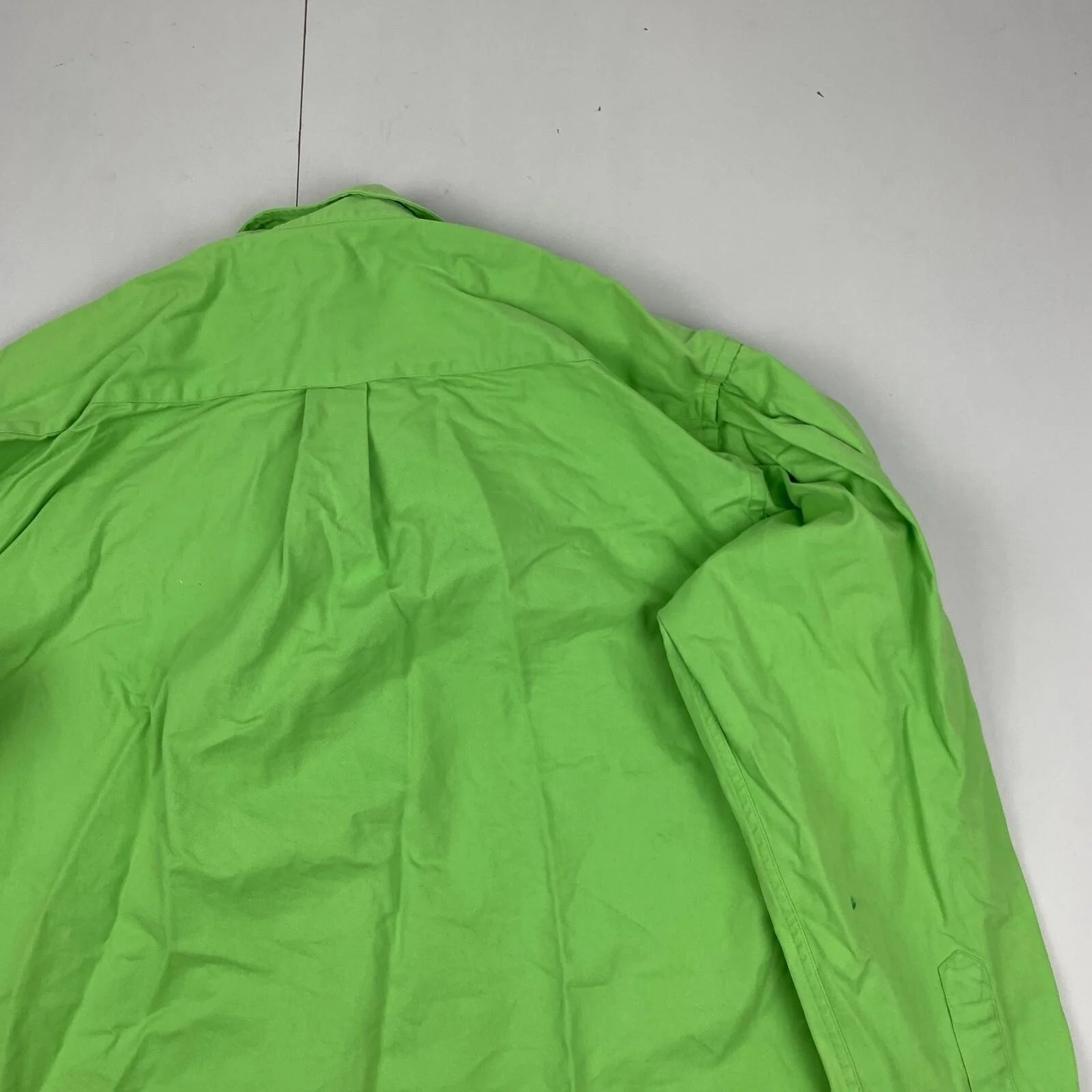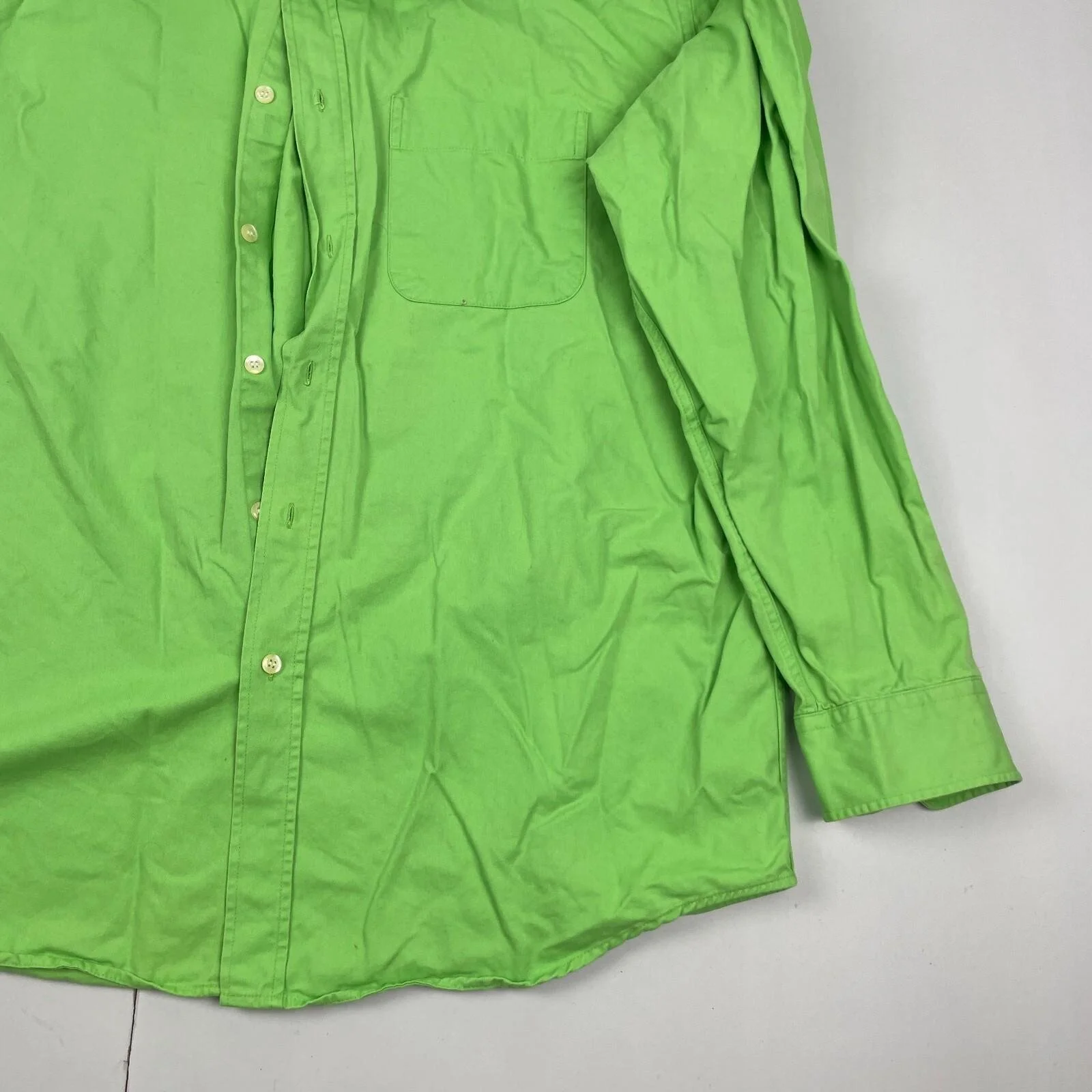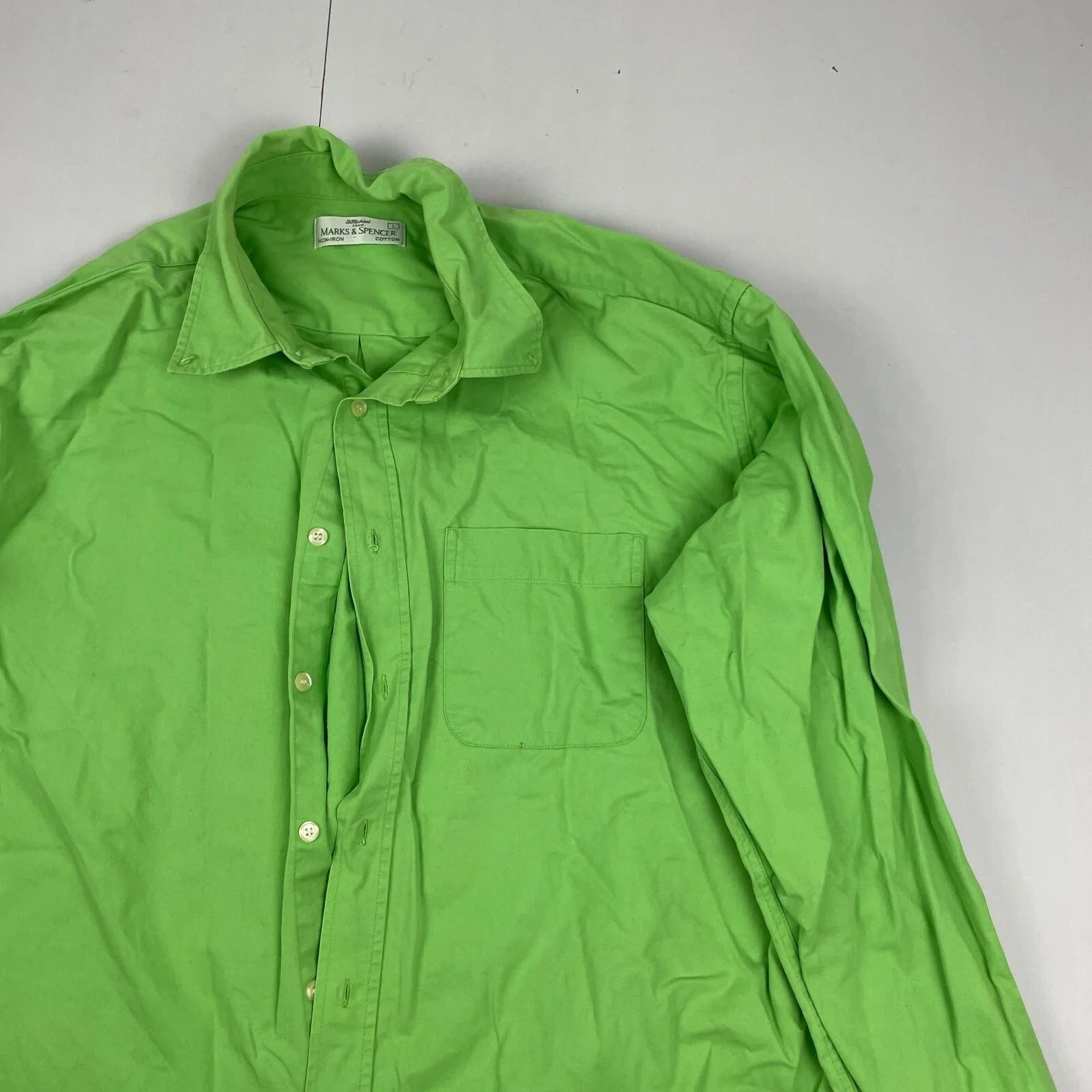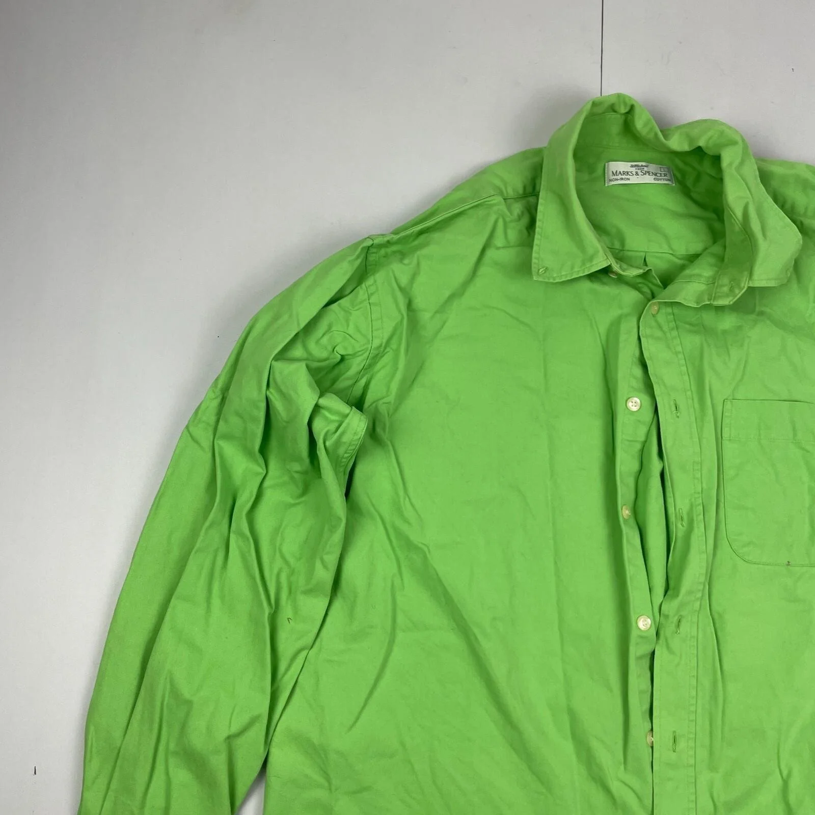 St Michael Shirt Large Green Mens Long Sleeve Button Oxford Heavy Cotton Vtg M&S