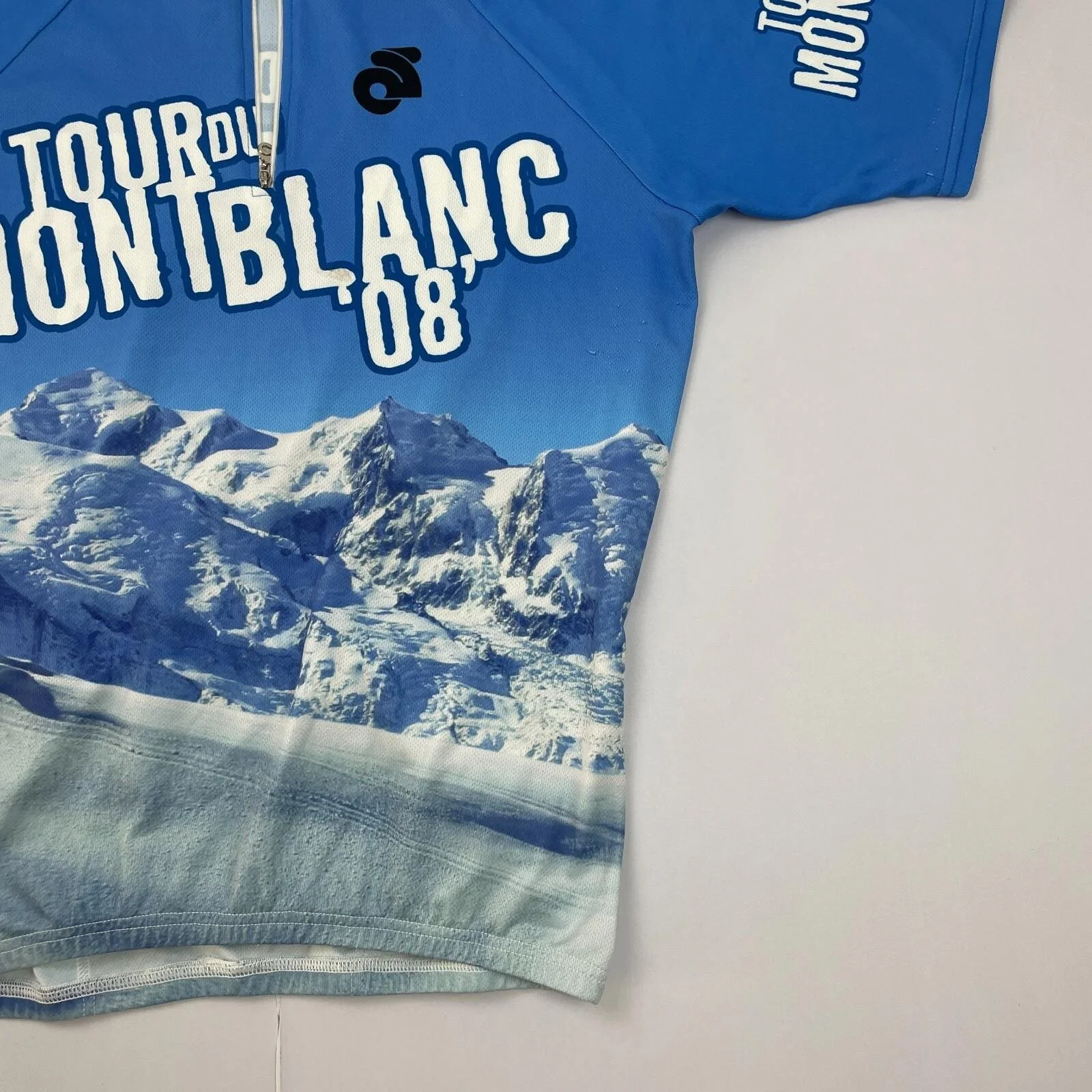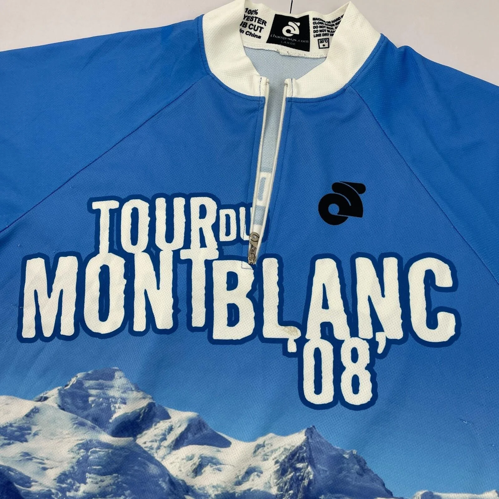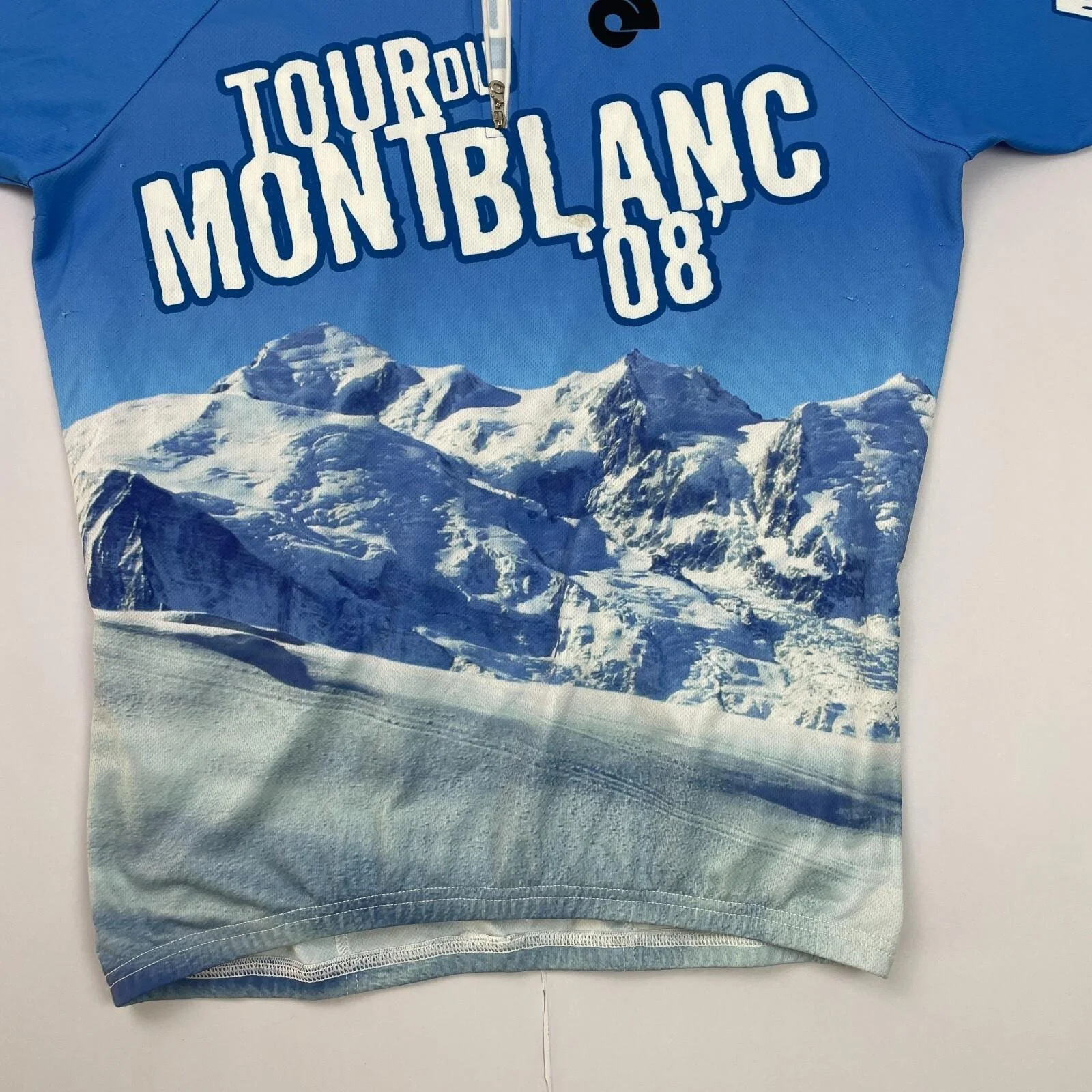 Tour Du Mont Blanc Cycle Jersey Large Blue 1/4 Zip Pockets Short Sleeve 1/2 Top