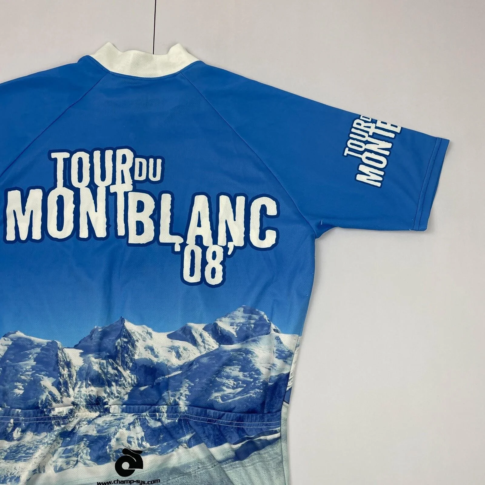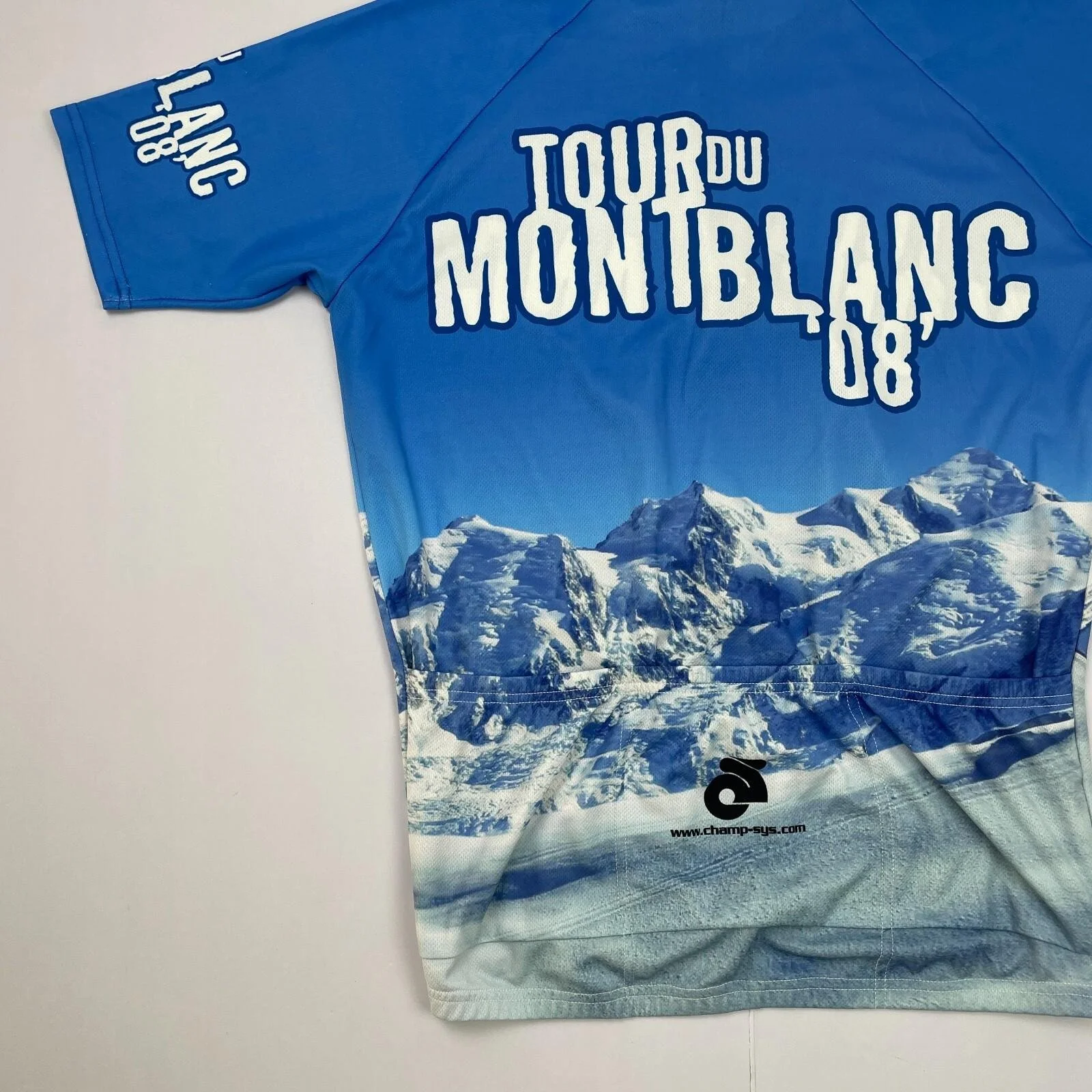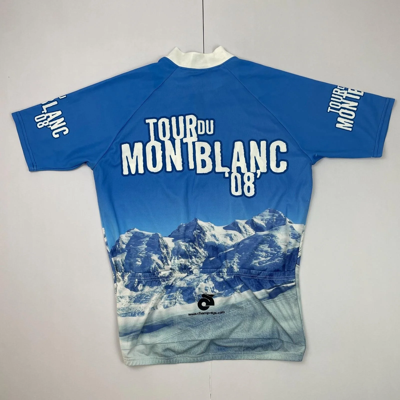 Tour Du Mont Blanc Cycle Jersey Large Blue 1/4 Zip Pockets Short Sleeve 1/2 Top