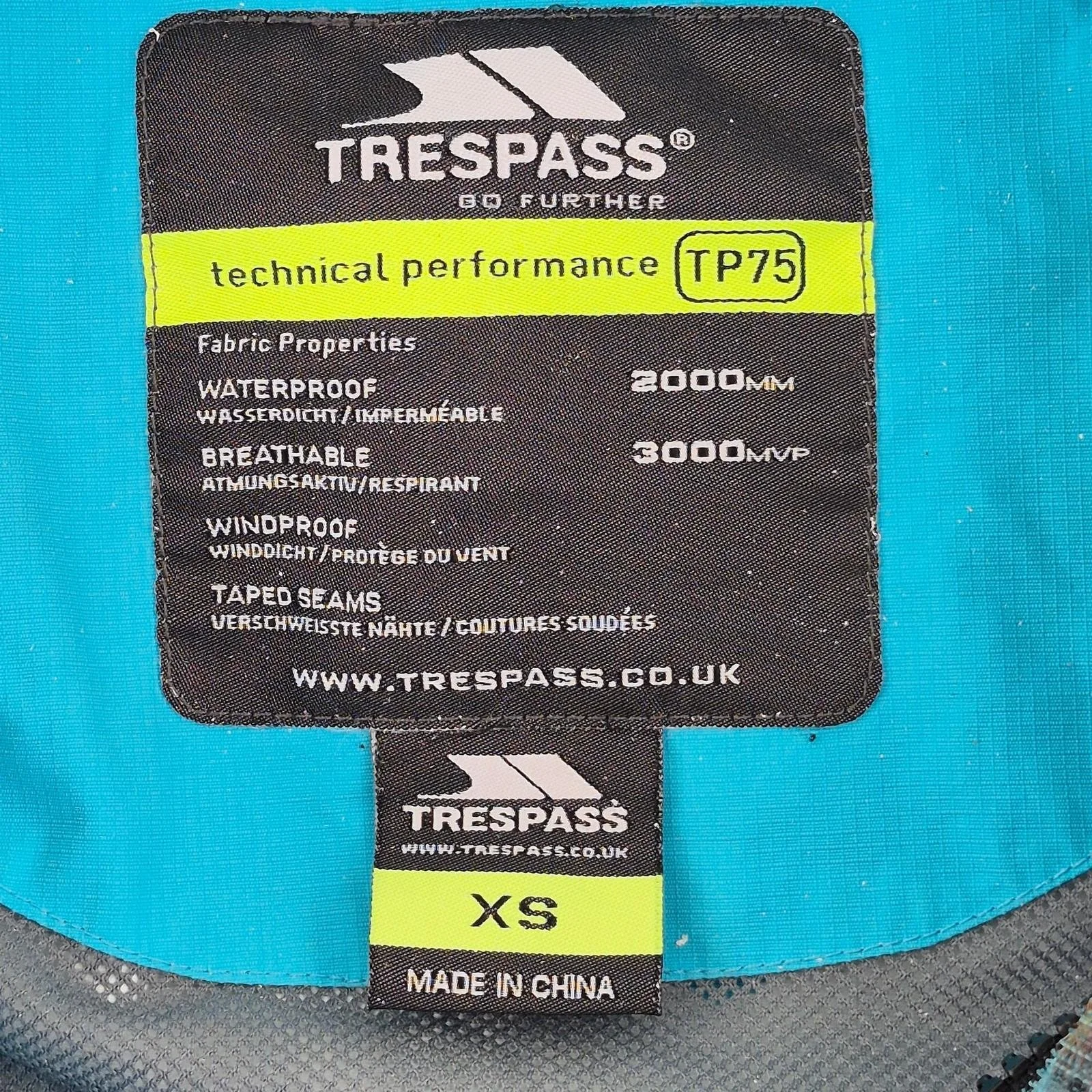TRESPASS TP75 Jacket XS Blue Women's Waterproof Breathable Windproof Outdoor