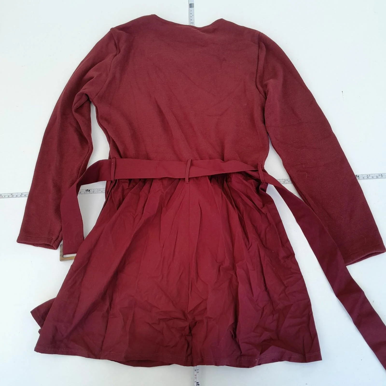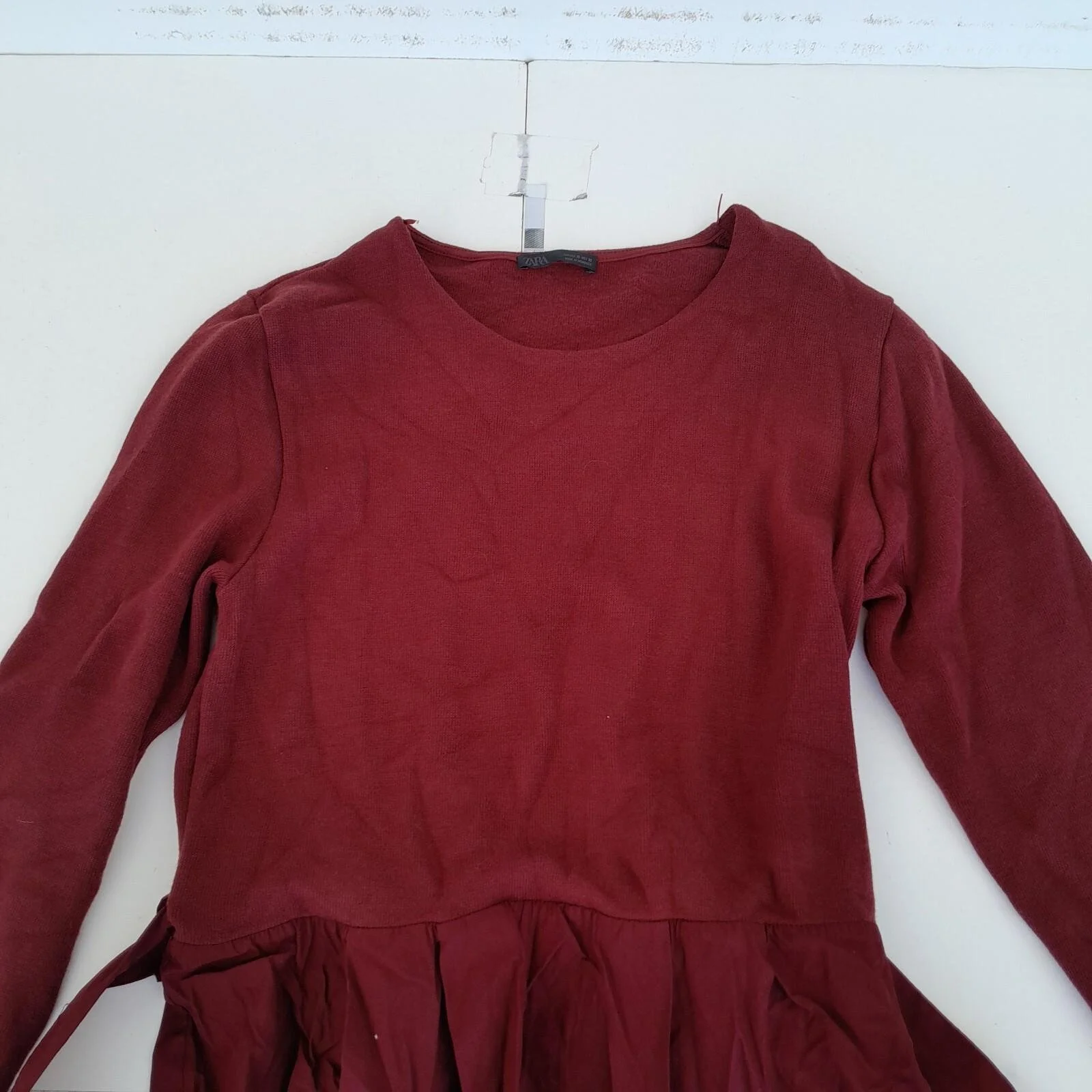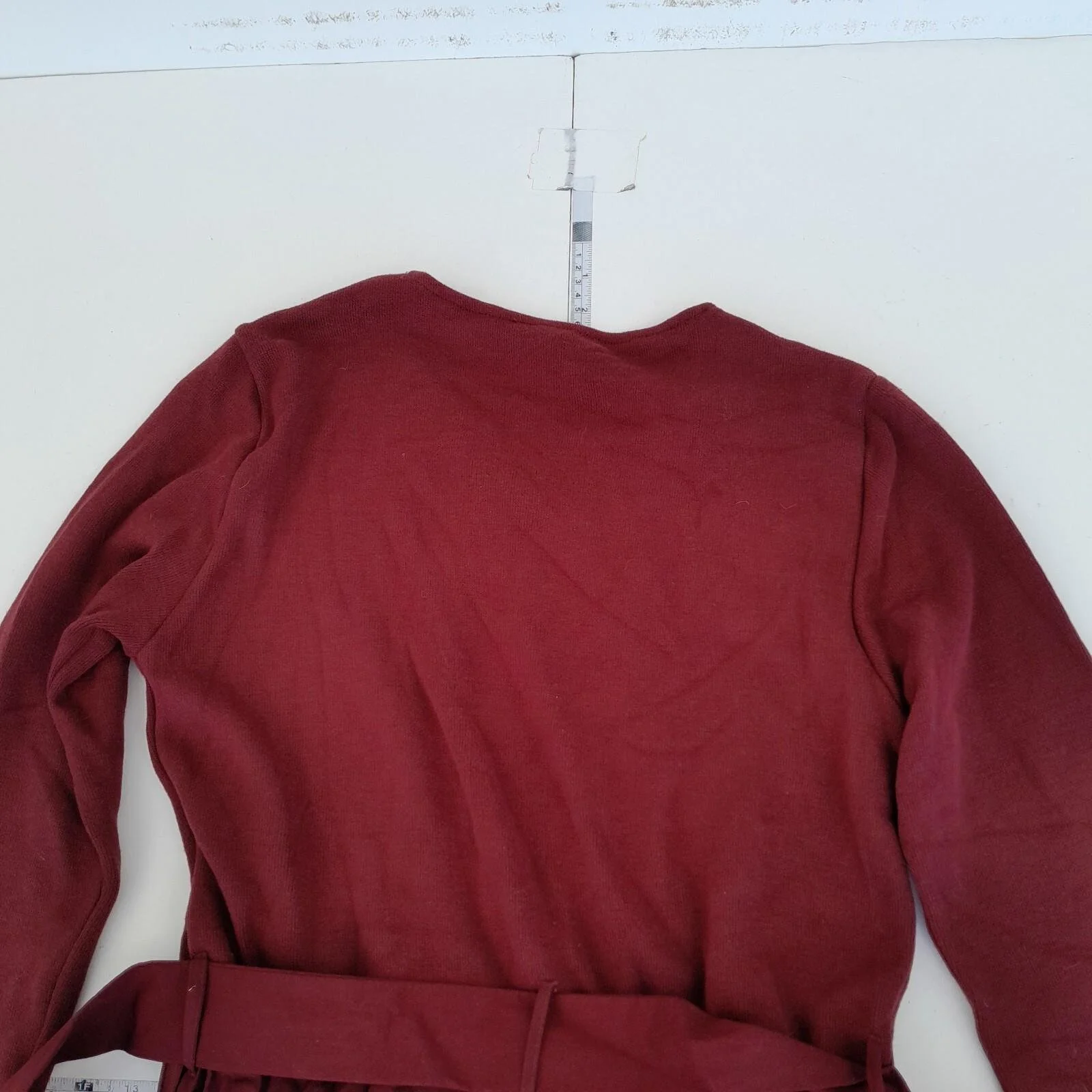 Zara Dress XL Red Long Sleeve Round Neck Belted Midi Knit Top
